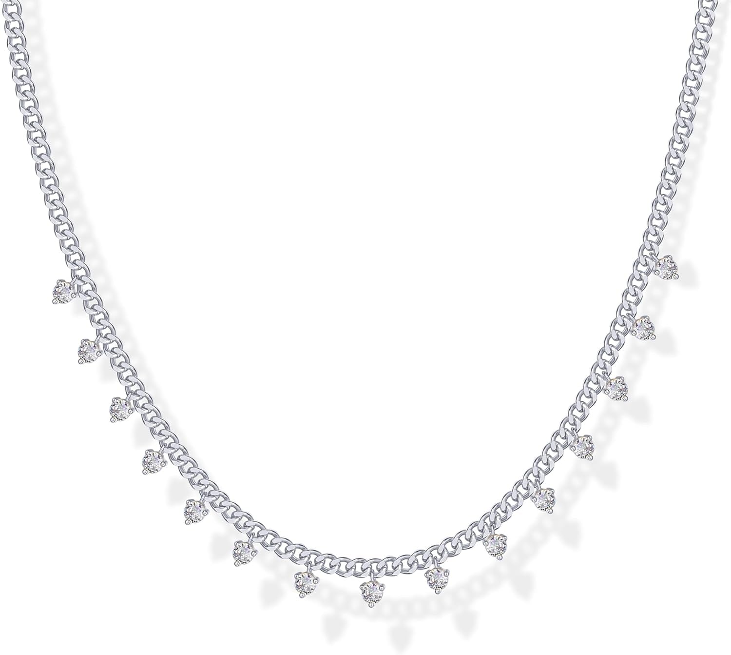 Collar de Estaciones para Mujer | Baño en Oro 14K | Cadena Fina con Circonitas Simuladas | Joyería de Moda para Capas y Looks Elegantes