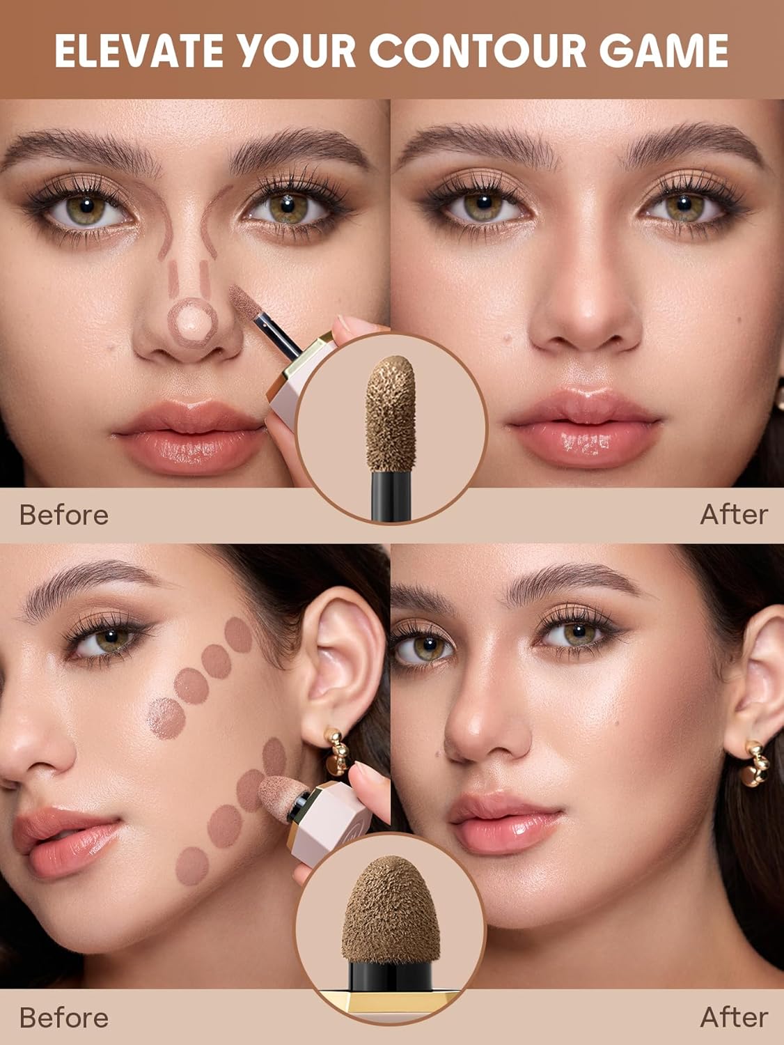- APLICADOR DE DOBLE EXPOSICIÓN: Con una esponja para mezclar sin esfuerzo y una punta de precisión para esculpir específicamente
