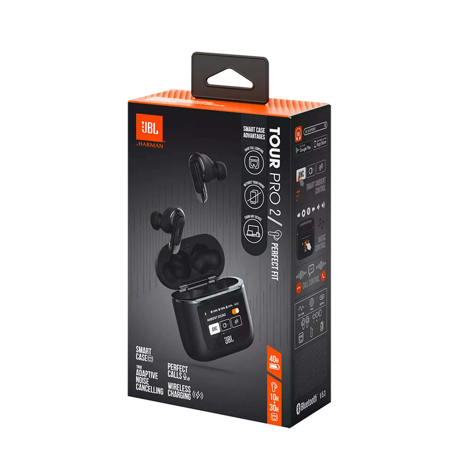 JBL Tour Pro 2 – Auriculares Bluetooth Inalámbricos con Cancelación de Ruido Adaptativa y Smart Case – Color Negro