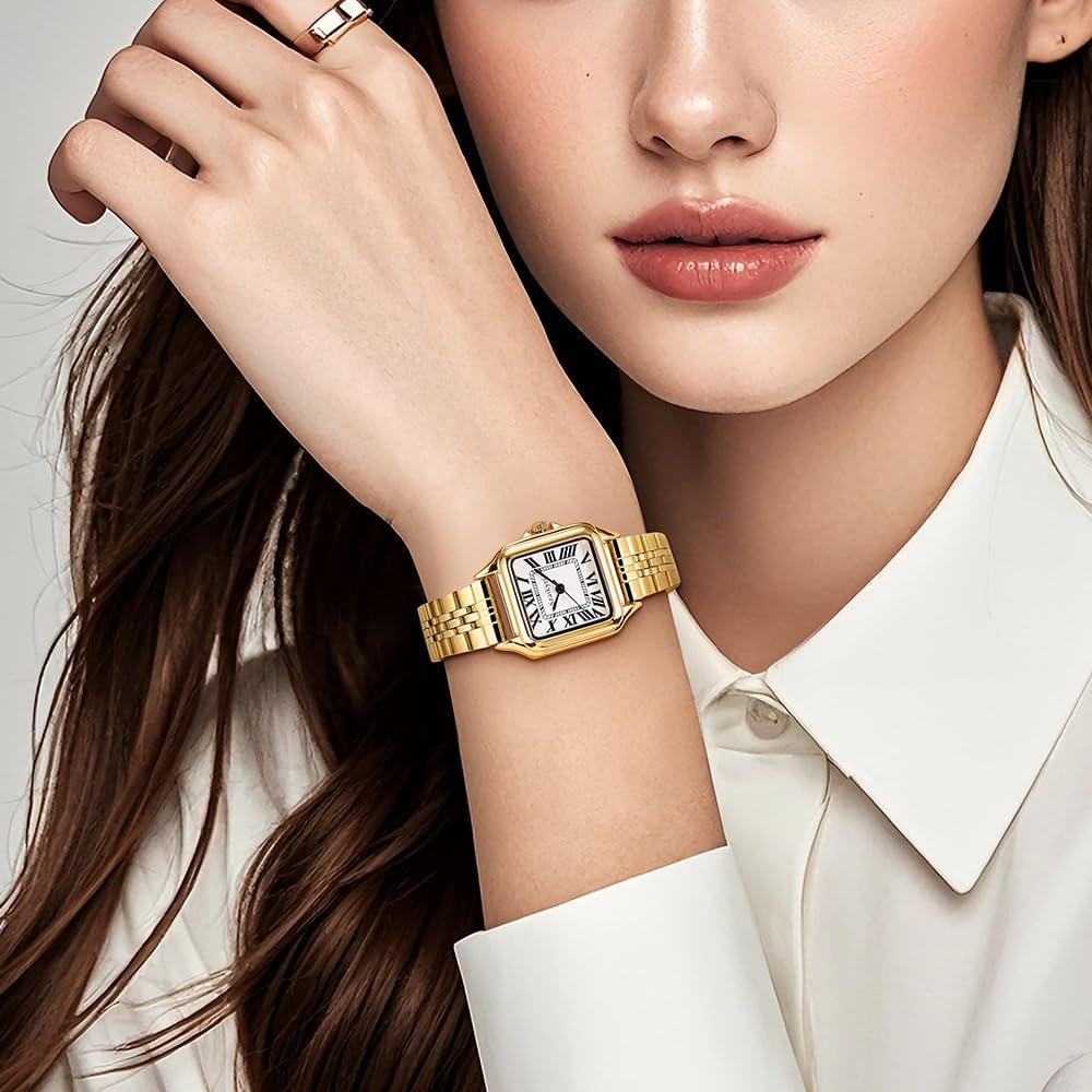 Elegante y minimalista, este reloj cuadrado de 25 mm para mujer combina una estética clásica con números romanos y un tamaño discreto que estiliza la muñeca. Su movimiento japonés garantiza un marcaje de tiempo fiable, y la batería puede alcanzar hasta 24 meses de vida útil. Puedes elegir entre correa de acero (con ajuste incluido mediante destornillador) o correa de cuero, para adaptar el reloj a tu estilo. Además, su resistencia al agua para uso diario lo convierte en un compañero práctico para la rutina, mientras que el chapado iónico al vacío protege el color y el acabado con el paso del tiempo.