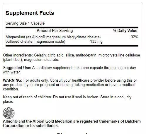 Swanson Albion Magnesio Glicinato 133 mg – 90 Cápsulas